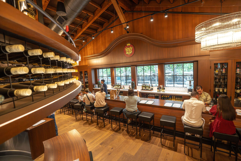 At the tasting bars, the wine program refuses to play safe. Rieslings from Mount Veeder, Lambrusco style blends, and small batch natural wines sit alongside the winery’s classic Cabernets. It is a rare tasting room that invites a plate of branzino tartare or bacon wrapped dates beside a glass of estate wine.